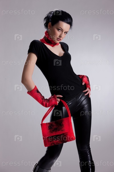 Молодая женщина, одетая в модной одежде ручной работы
