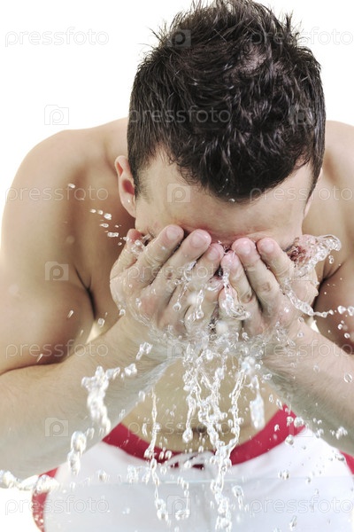 Молодой человек умывается водой