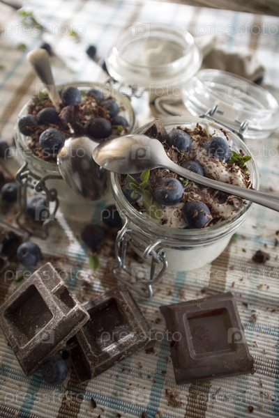 Шоколадный йогурт и черника