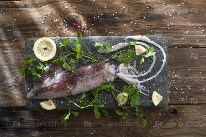 Свежий сырой кальмар