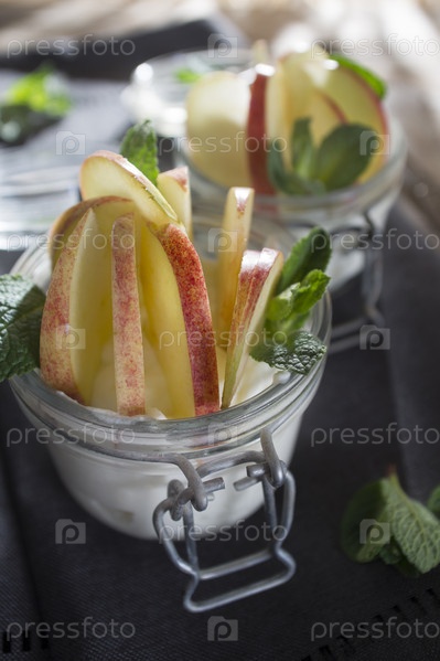 Йогурт с яблоком и мятой