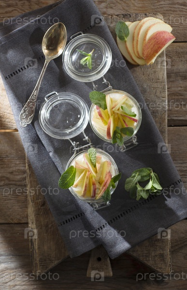 Йогурт с яблоком и мятой