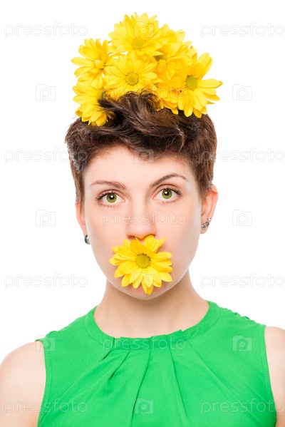 Женщина с цветами на белом фоне
