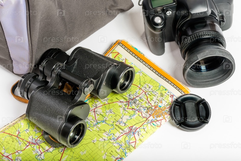 Карта, бинокль и камера