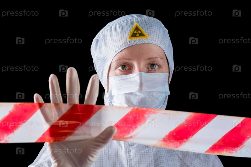 Женщина в защитной одежде, работающая в зараженной зоне