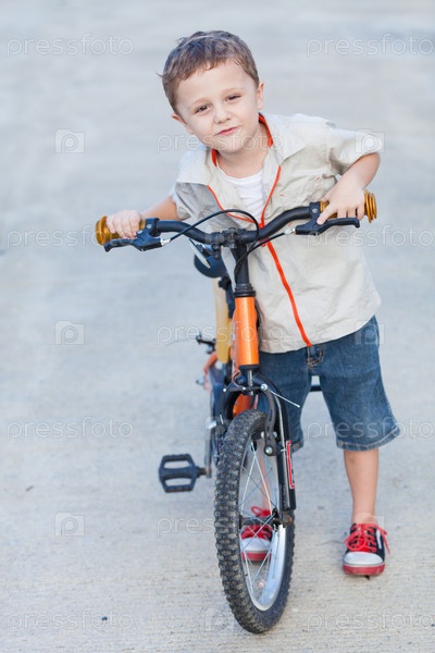 Счастливый мальчик с велосипедом