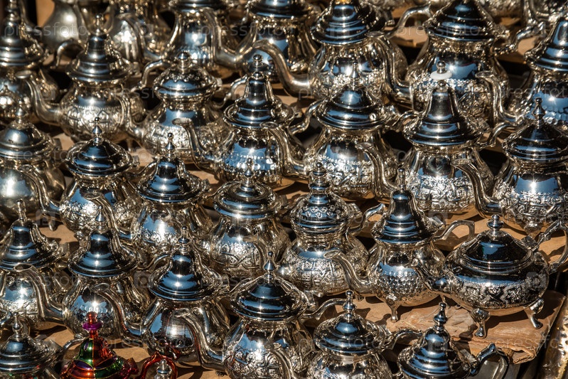 Арабские чайники для чая на восточном базаре