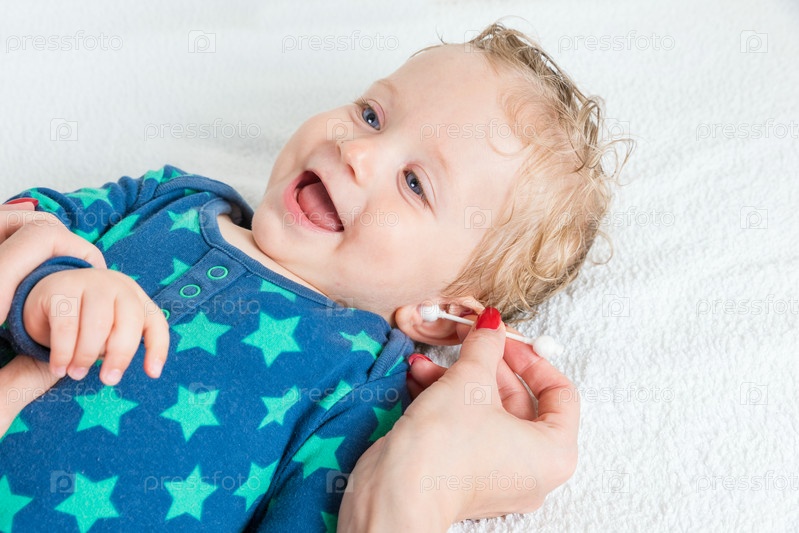 Мать чистит сыну ухо