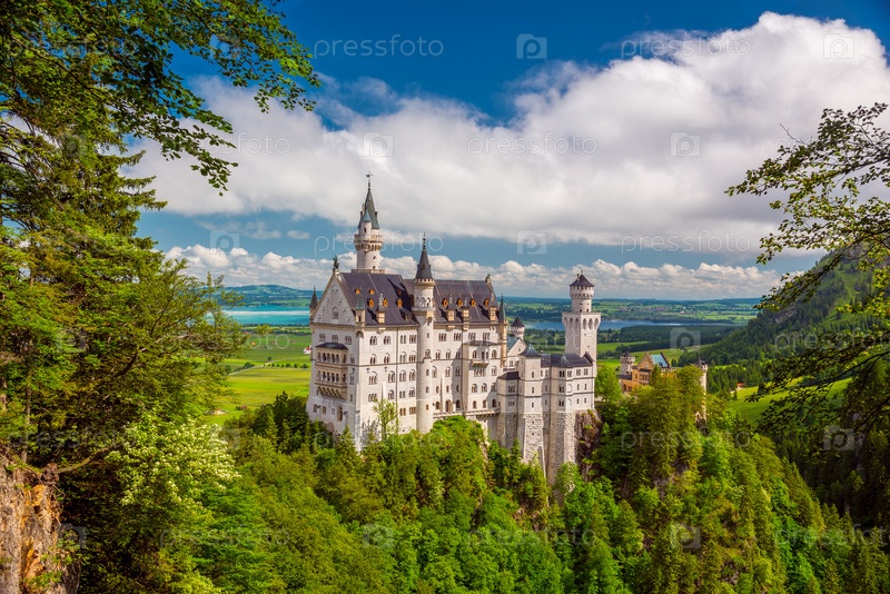 Живописный пейзаж с замком Нойшванштайн. Германия