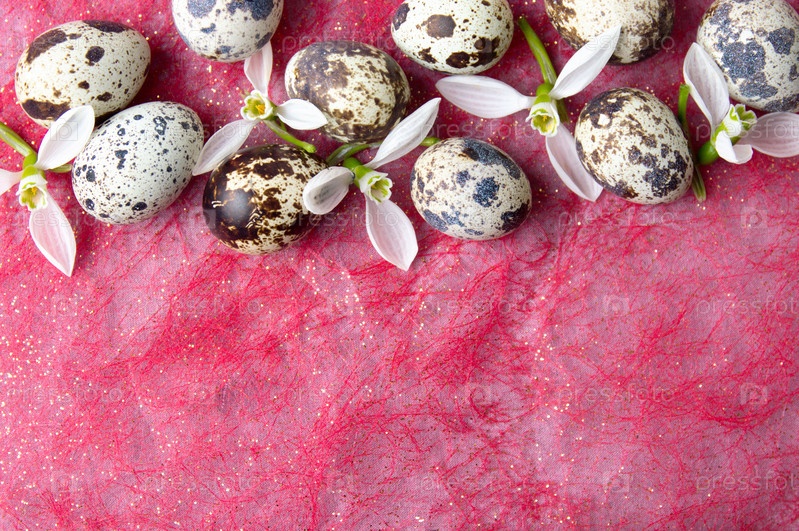 Перепелиные яйца и цветы подснежника