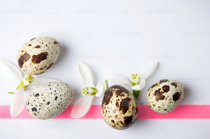 Перепелиные яйца и цветы подснежника