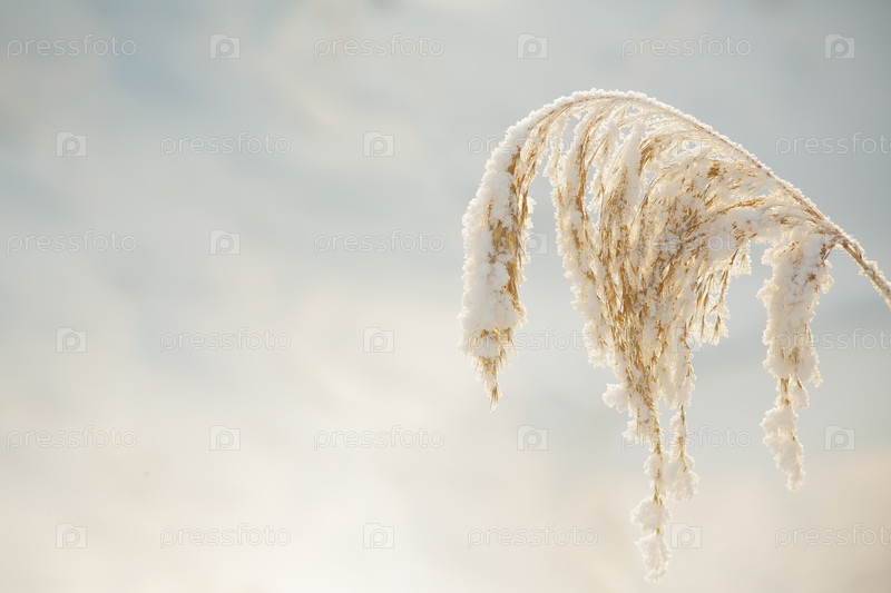 Стебли тростника в снегу
