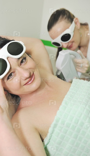 Молодая женщина делает лазерную эпиляцию в салоне красоты