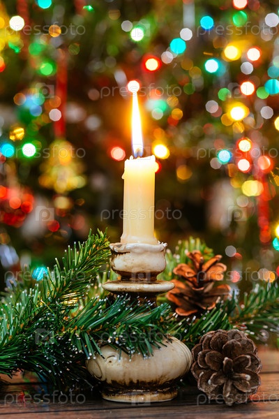 Горящая свеча на елке
