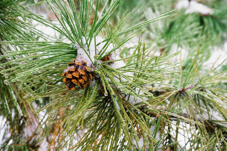 Замороженная зимняя хвоя