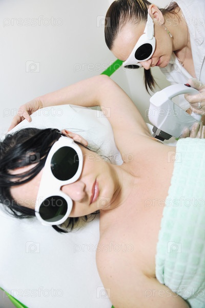 Молодая женщина делает лазерную эпиляцию в салоне красоты