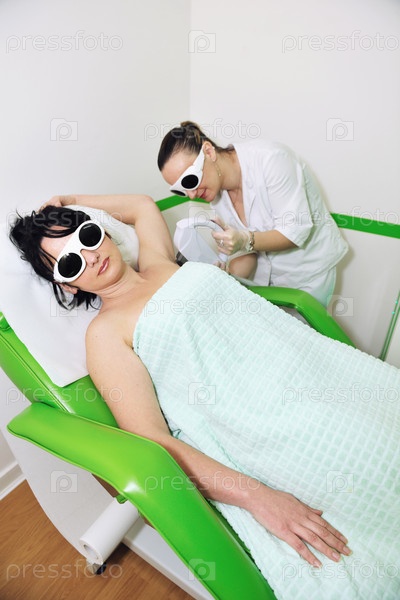 Молодая женщина делает лазерную эпиляцию в салоне красоты