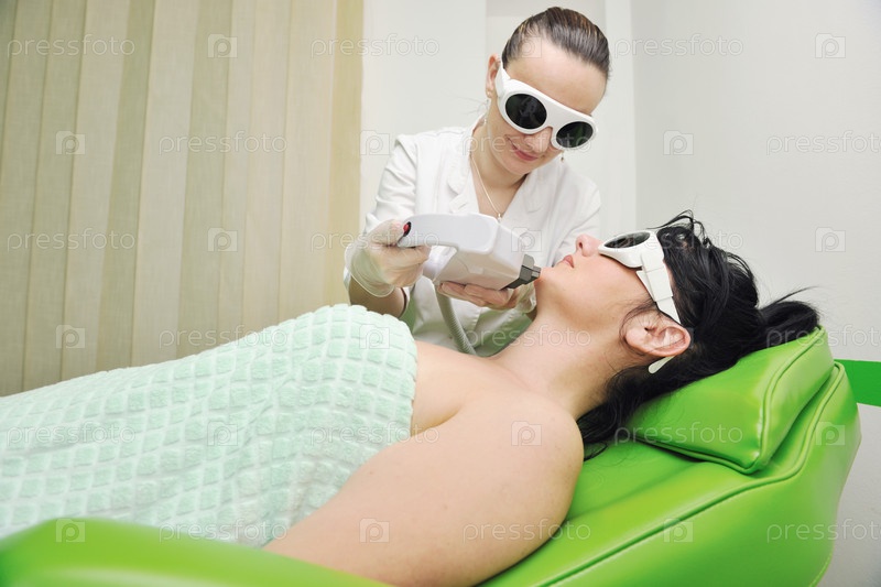Молодая женщина делает ультразвуковую чистку лица в салоне красоты