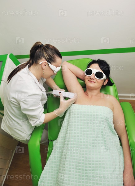 Молодая женщина делает лазерную эпиляцию в косметическом кабинете