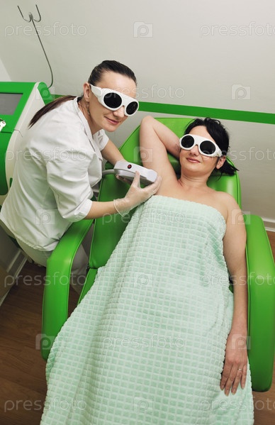 Молодая женщина делает лазерную эпиляцию в косметическом кабинете