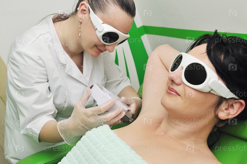 Молодая женщина делает лазерную эпиляцию в косметическом кабинете