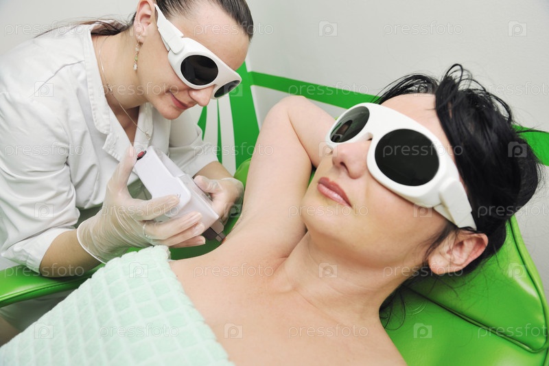 Молодая женщина делает лазерную эпиляцию в косметическом кабинете