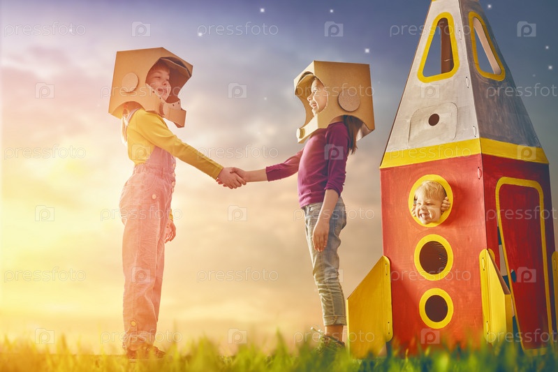 Дети в костюмах космонавтов