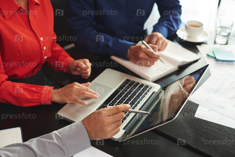 Обсуждение данных на экране ноутбука