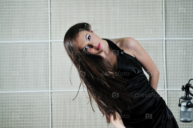 Красивая брюнетка в радиостудии