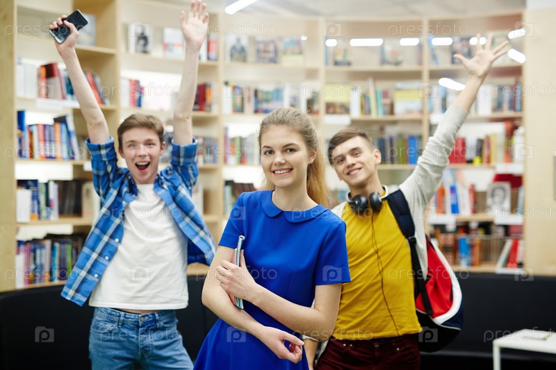 Счастливые студенты в колледже
