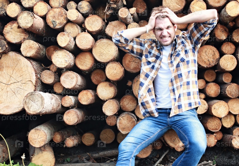 Мужчина на фоне поленьев