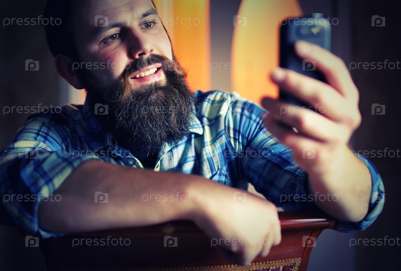 Бородатый мужчина с телефоном