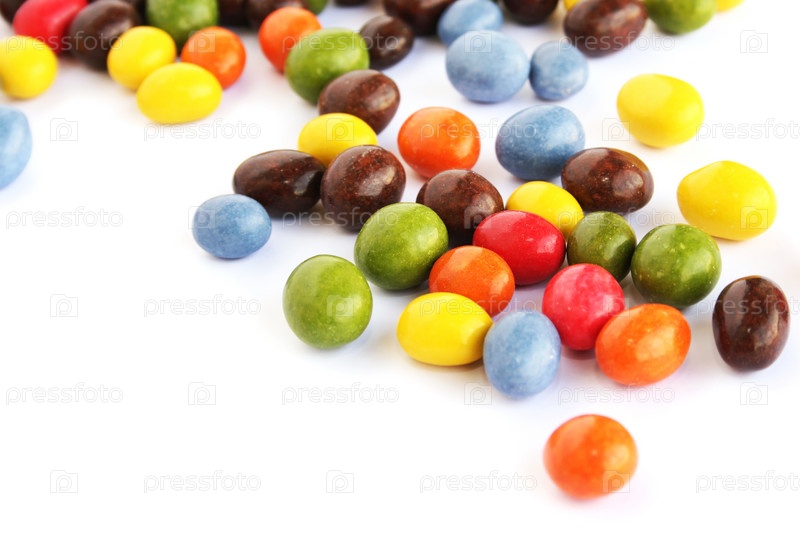 Конфеты с изюмом и арахисом, изолированы на белом фоне