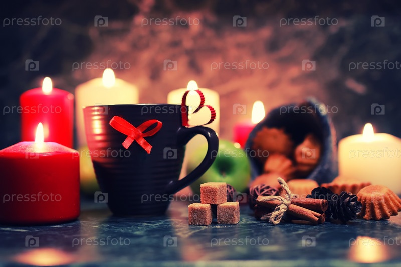 Ночной столик с кружкой и свечой