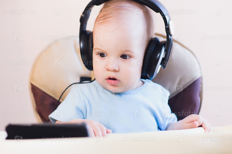 Маленький ребенок в наушниках