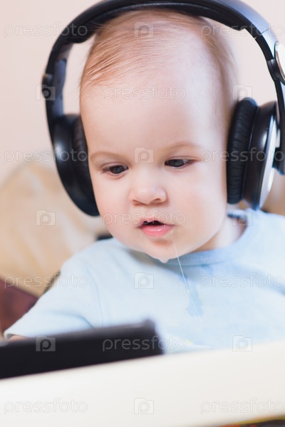 Маленький ребенок в наушниках