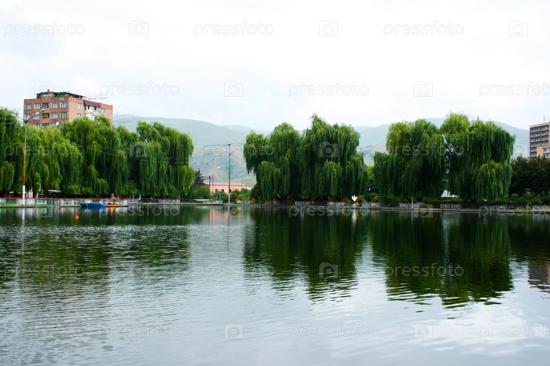 Ивовые деревья на озере в городе Ванадзор, Армения