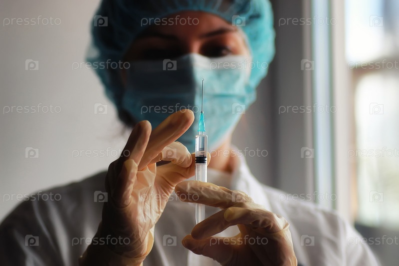 Медсестра держит шприц
