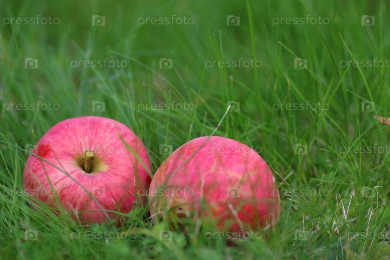 Урожай яблок на траве