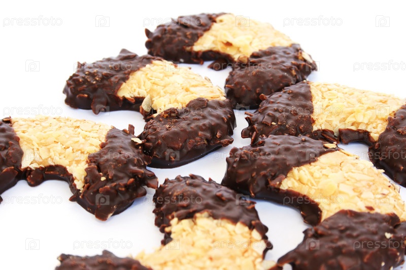 Печенье с шоколадом и миндалем, изолировано на белом фоне