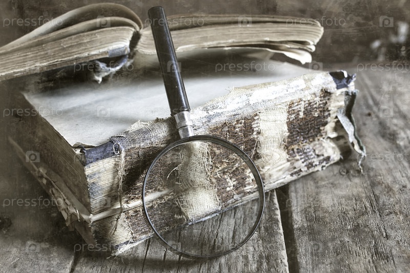 Увеличительное стекло и старая книга