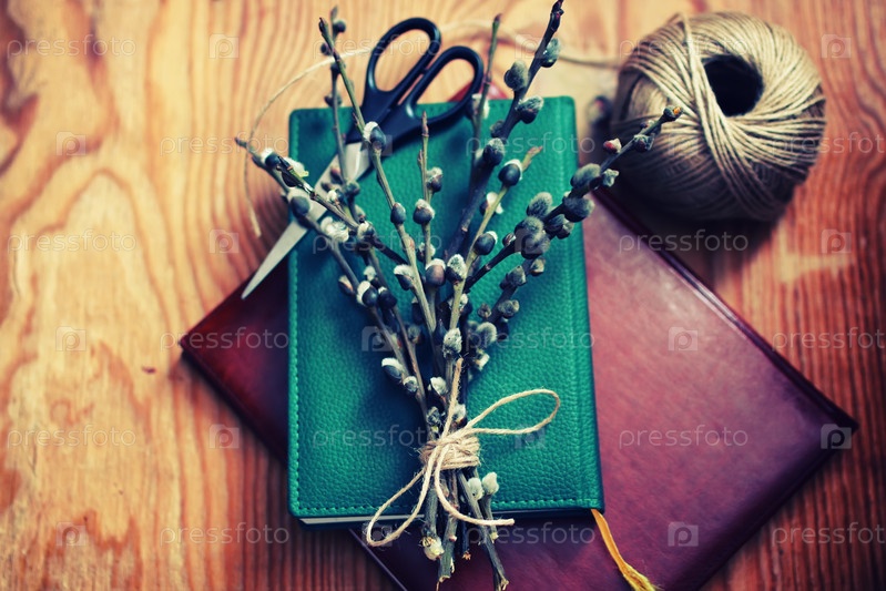 Ветви ивы на книге