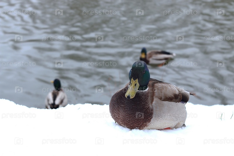 Зимний парк с утками
