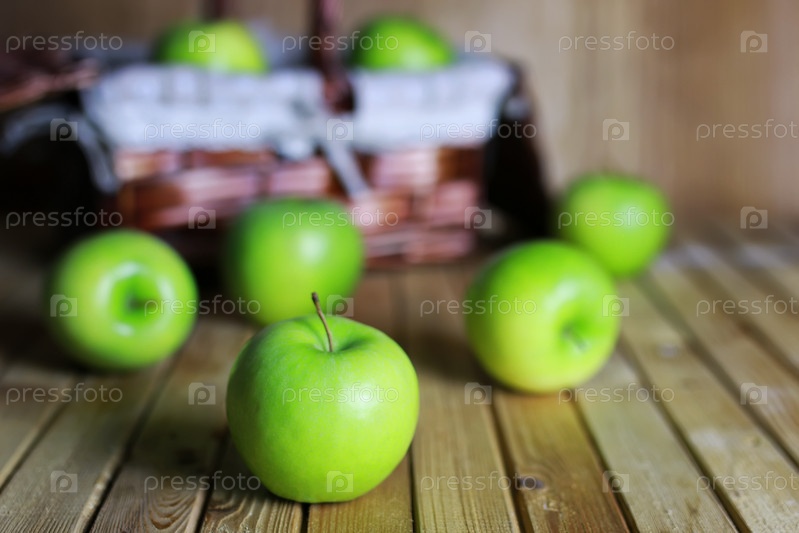 Зеленые яблоки в корзине
