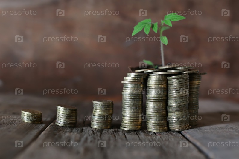Растение и стопки монет