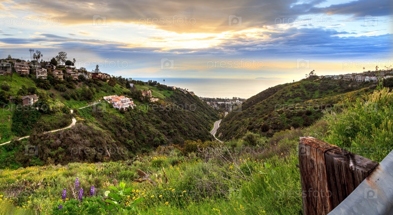 Вид на холм с Парковой улицы на закате