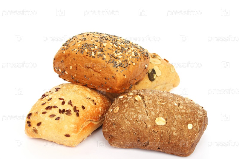 Булочки с семечками, изолированы на белом фоне