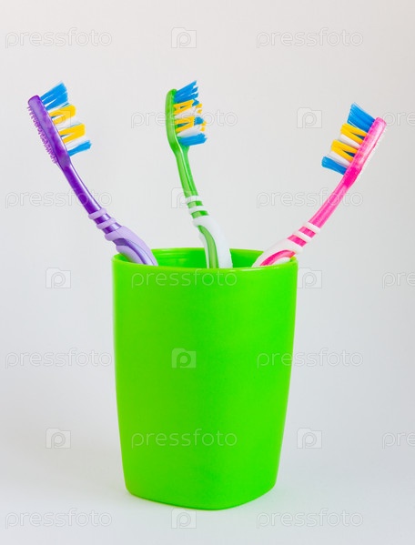Три разноцветные зубные щетки