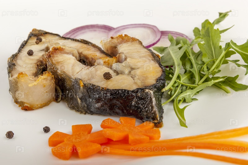 Жаренные стейки осетрины
