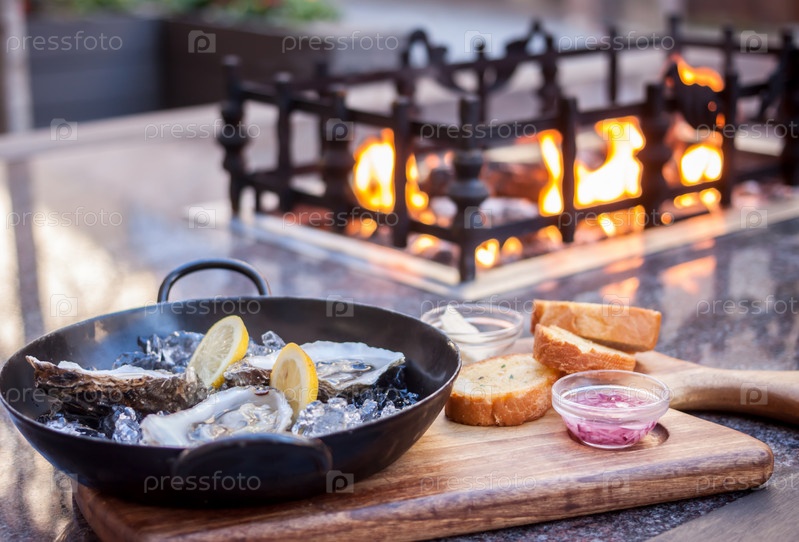 Свежие открытые устрицы